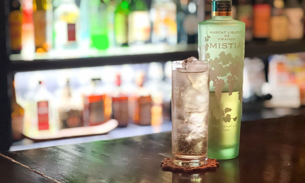 一方で、女性のお客さんに人気なのは、フランス産のマスカットリキュール「ミスティア」を使ったカクテル、「ミスティアジンジャー」。