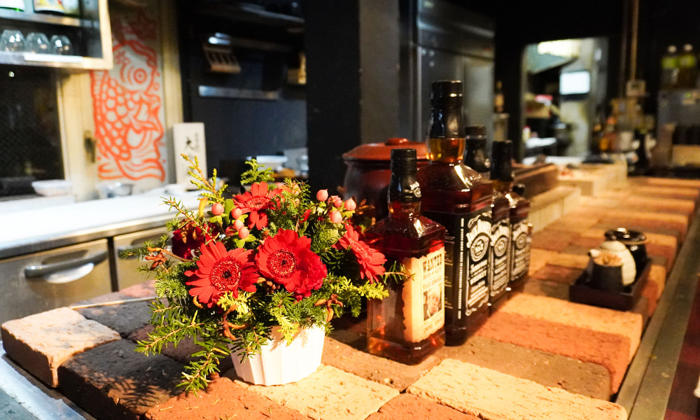 「焼鳥39京町店」の店内では、目の前で炭火焼き鳥が焼き上がるライブ感を楽しめるカウンター席が魅力。